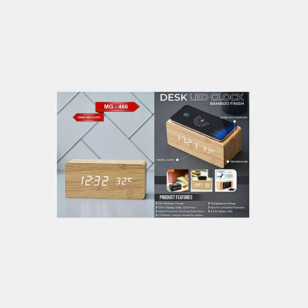 Desk LED Clock (Bamboo Finish) – 3039